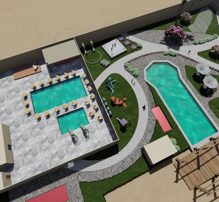 The scope also covered the construction of swimming pools and extensive landscape areas, ensuring a